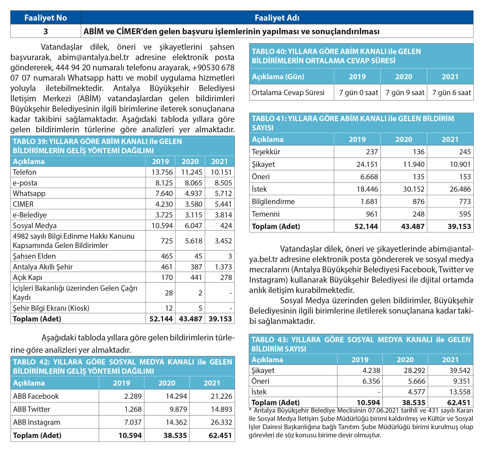 Kaynak: Antalya Büyükşehir Belediyesi 2021 Faaliyet Raporu, sayfa 62–63