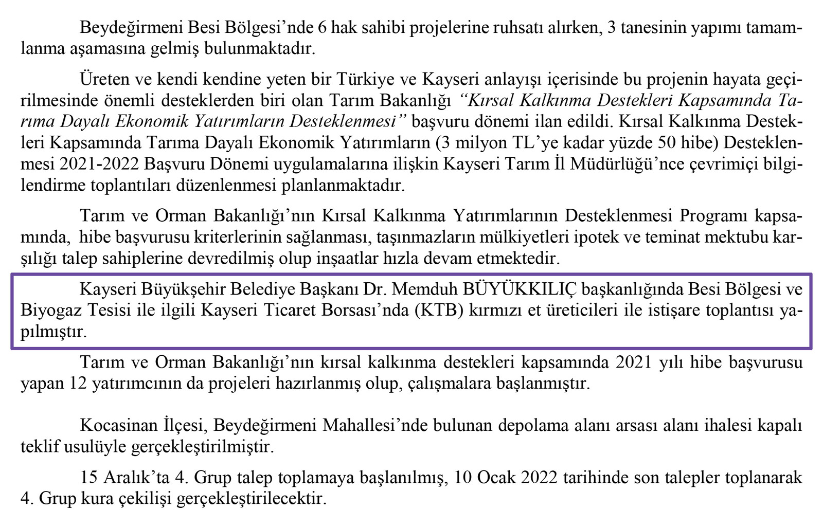 Kaynak: Kayseri Büyükşehir Belediyesi 2021 Faaliyet Raporu, sayfa 128