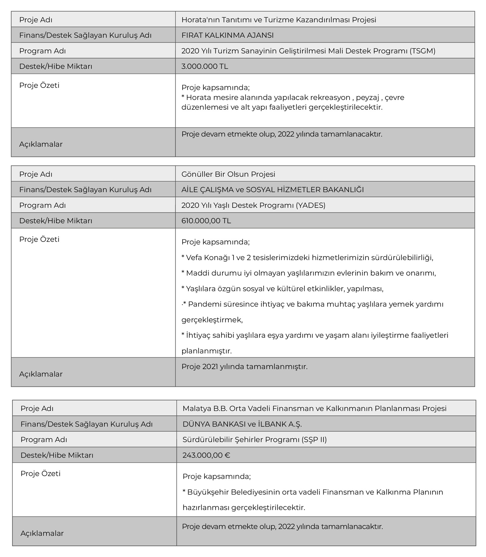 Kaynak: Malatya Büyükşehir Belediyesi 2021 Faaliyet Raporu, sayfa 227–234